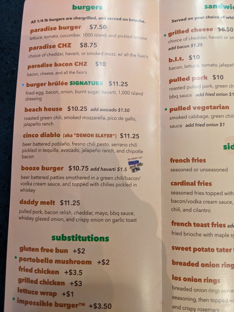 Welcome to Paradise Valley Burger, your ultimate American dining destination nestled in Tempe, AZ. Known for its delicious selection of burgers, this casual eatery embraces the heart of simple, yet gourmet, comfort food. Each burger, like the Burger Brulee topped with a fried egg and Havarti, is grilled to perfection and served on a soft brioche bun, offering a delightful bite in every mouthful.
